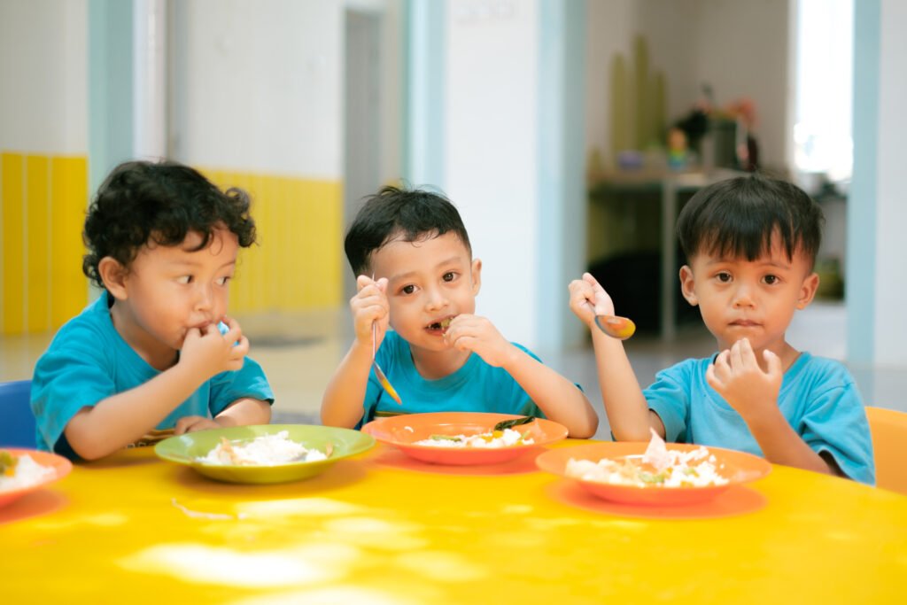 Kemandirian: Pembiasaan mandiri melalui kegiatan menjaga kebersihan diri, makan bersama setiap hari, dan tidur siang.