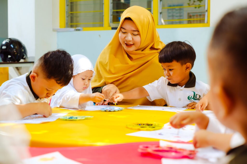 Bermain sambil belajar dengan pendekatan learning through play, menggunakan metode STEAM (Science, Technology, Engineering, Art, and Mathematics) dan literasi dasar (keaksaraan awal seperti pra-membaca dan pra-menulis sesuai tahap usia).
